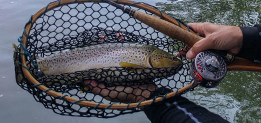 In questo tratto d’acqua, di trote ve ne sono parecchie, e anche di discrete dimensioni, ma tutte intanate nelle buche a valle delle briglie. Tutte le briglie, essendo non costruzioni recenti, ma resti di antichi lavori, hanno ai lati rovine sommerse di manufatti, ottime tane per le trote, al cui riparo attendono larve da mangiare. Ed ecco che approcciando le buche proprio in questo modo, con ricerca, scopriamo che qualche cattura discreta la portiamo a guadino.