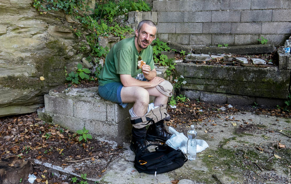 Ma qui confesso di avere avuto una brutta idea: per non far rovinare i wader a Mirko, sedendosi sulle pietre per la pausa pranzo, gli consiglio di abbassarseli alle ginocchia, ma l’effetto che ne scaturisce non è dei migliori, specialmente per me e Simone che stiamo mangiano un gustoso panino offertoci dalla Cristina, compagna di Mirko…